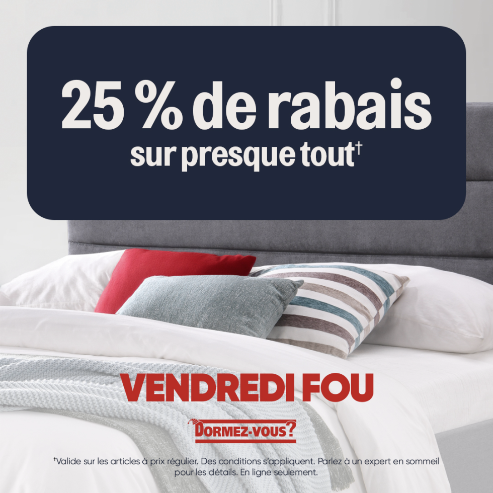 Rabais de rêve ou sommeil de rêve? Obtenez les deux, avec un rabais de 25 % sur presque tout, seulement chez Dormez-vous.
