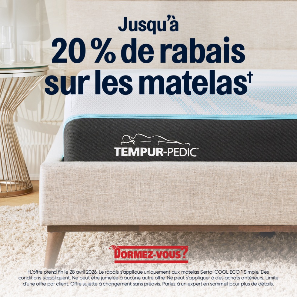 Jusqu’à 20 % de rabais sur les matelas*