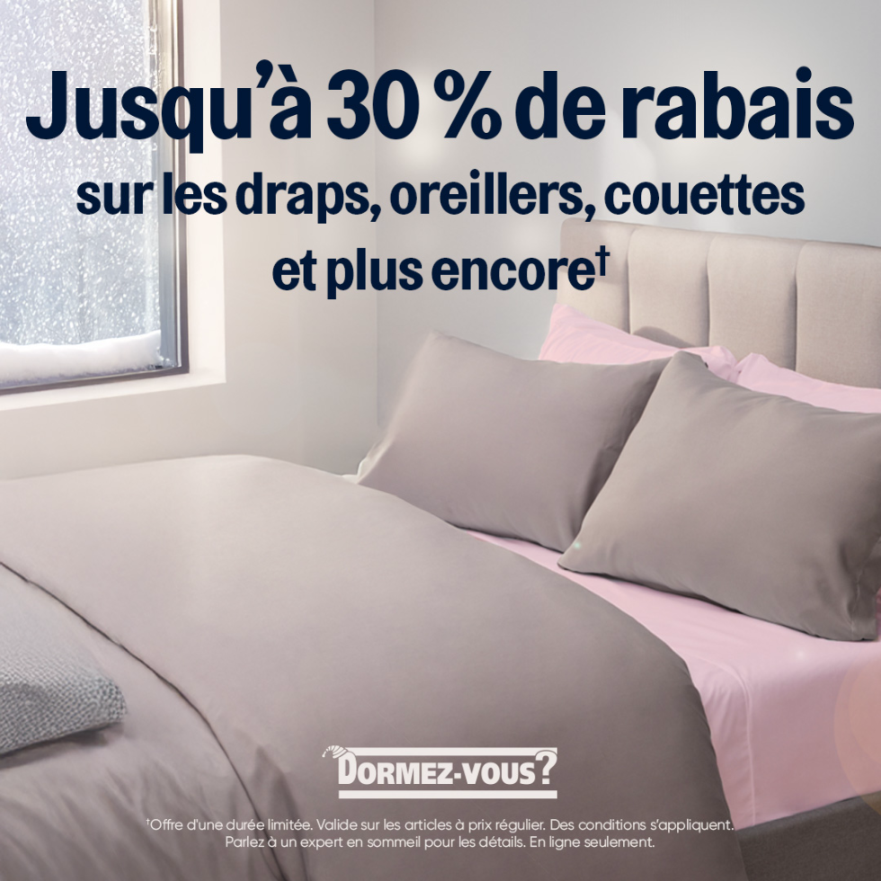 Profitez de 30 % de rabais sur les oreillers, les couettes et plus encore*